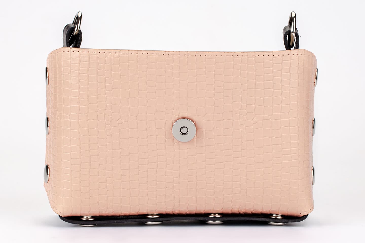 Перфектно решение за Вашия стайлинг – сменяема лицева част изработена от естествена кожа в кроко принт в розово.