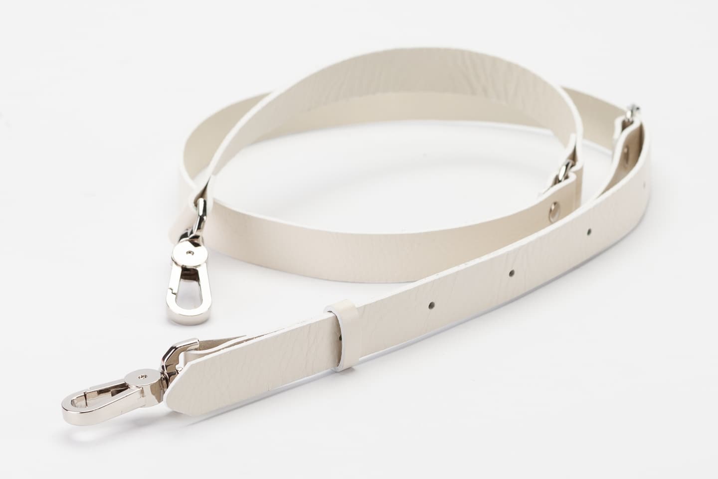 Перфектно решение за Вашия стайлинг – сменяема регулируема дръжка изработена от естествена кожа в бял цвят.