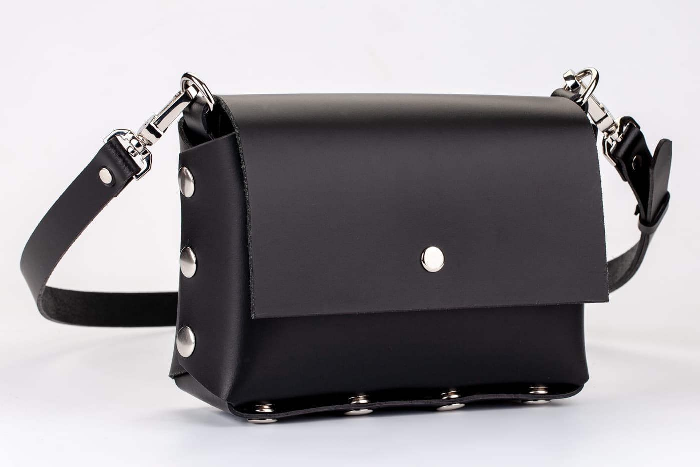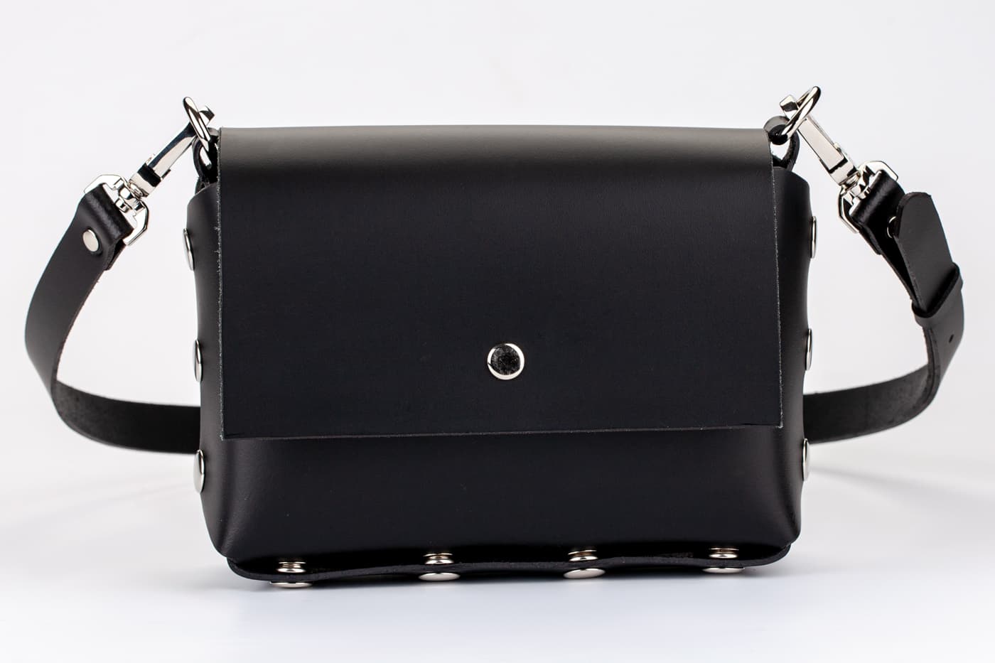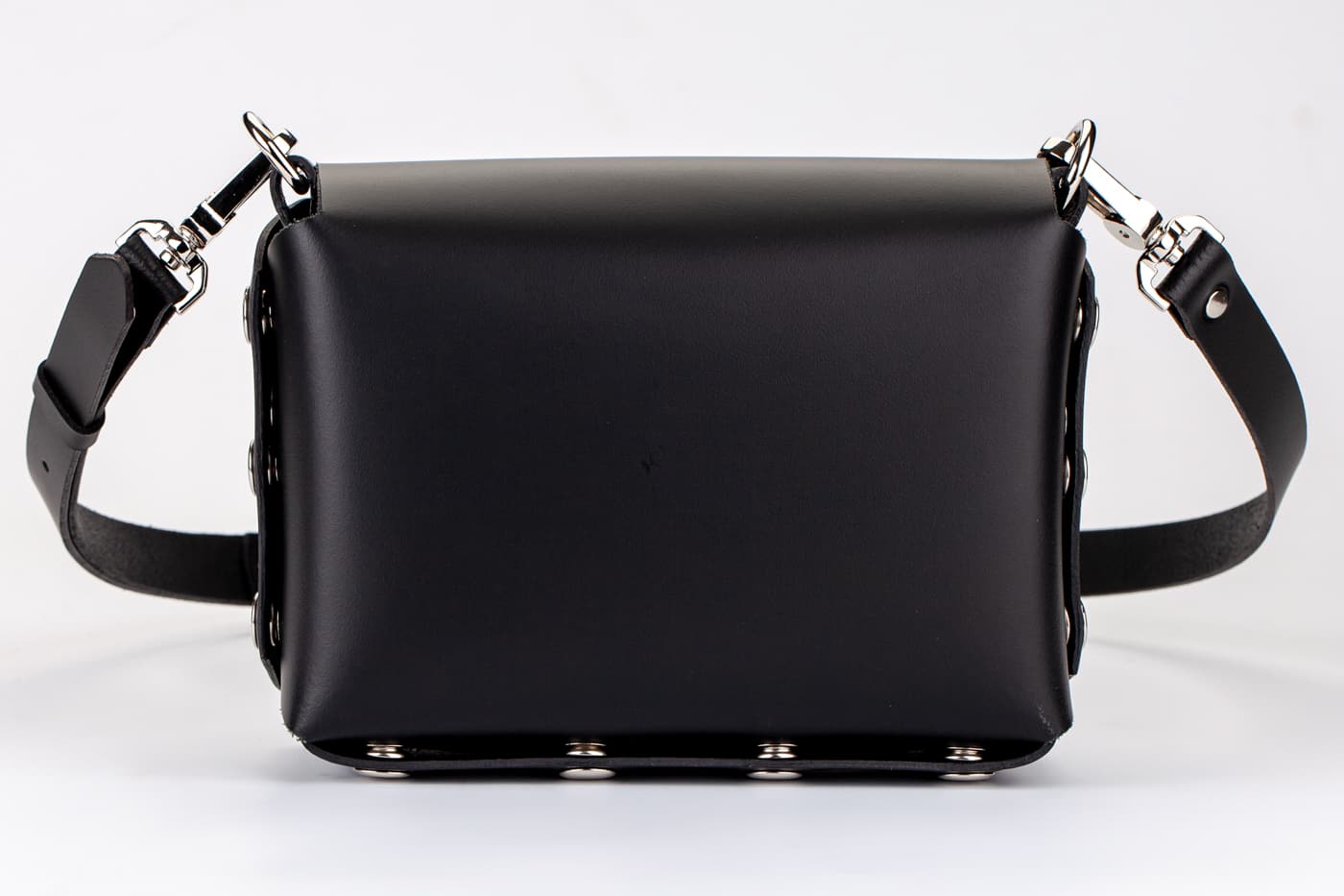 Лицевата част и дъното са изработени от висококачествена италианска кожа в черен цвят.