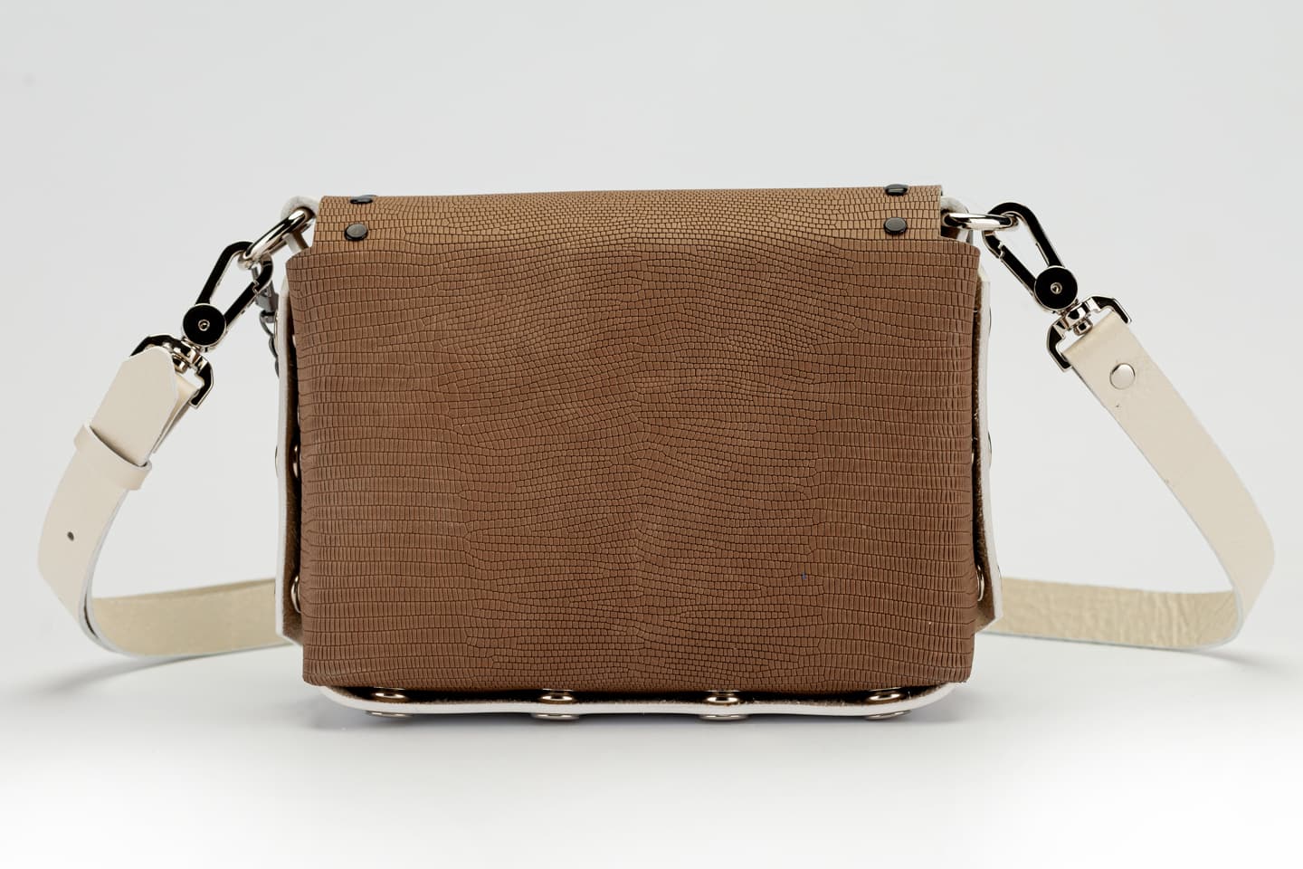 Лицевата част и дъното са изработени от висококачествена италианска кожа в бяло.