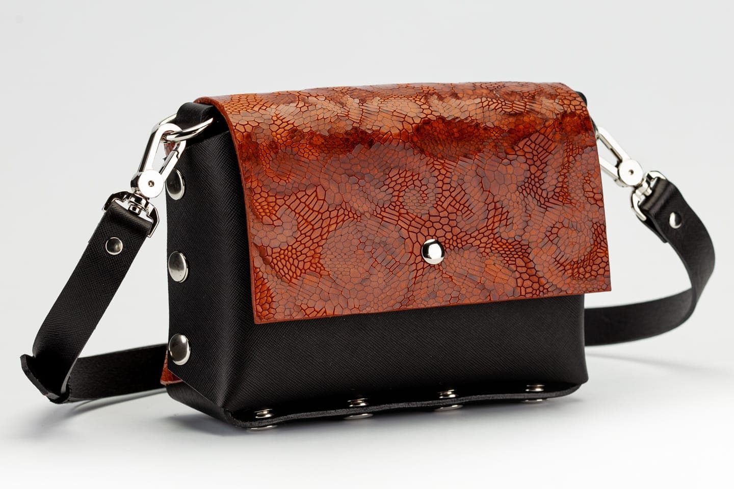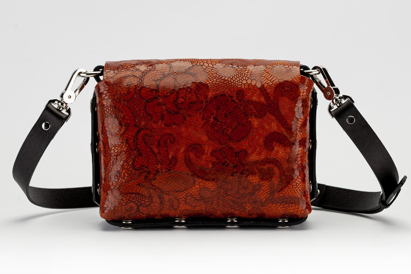 Лицевата част и дъното са изработени от висококачествена италианска кожа в черен цвят.