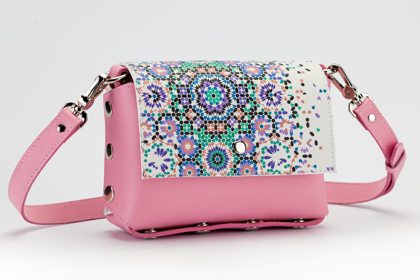 Модел Selin с капак от естествена кожа с цветен принт.