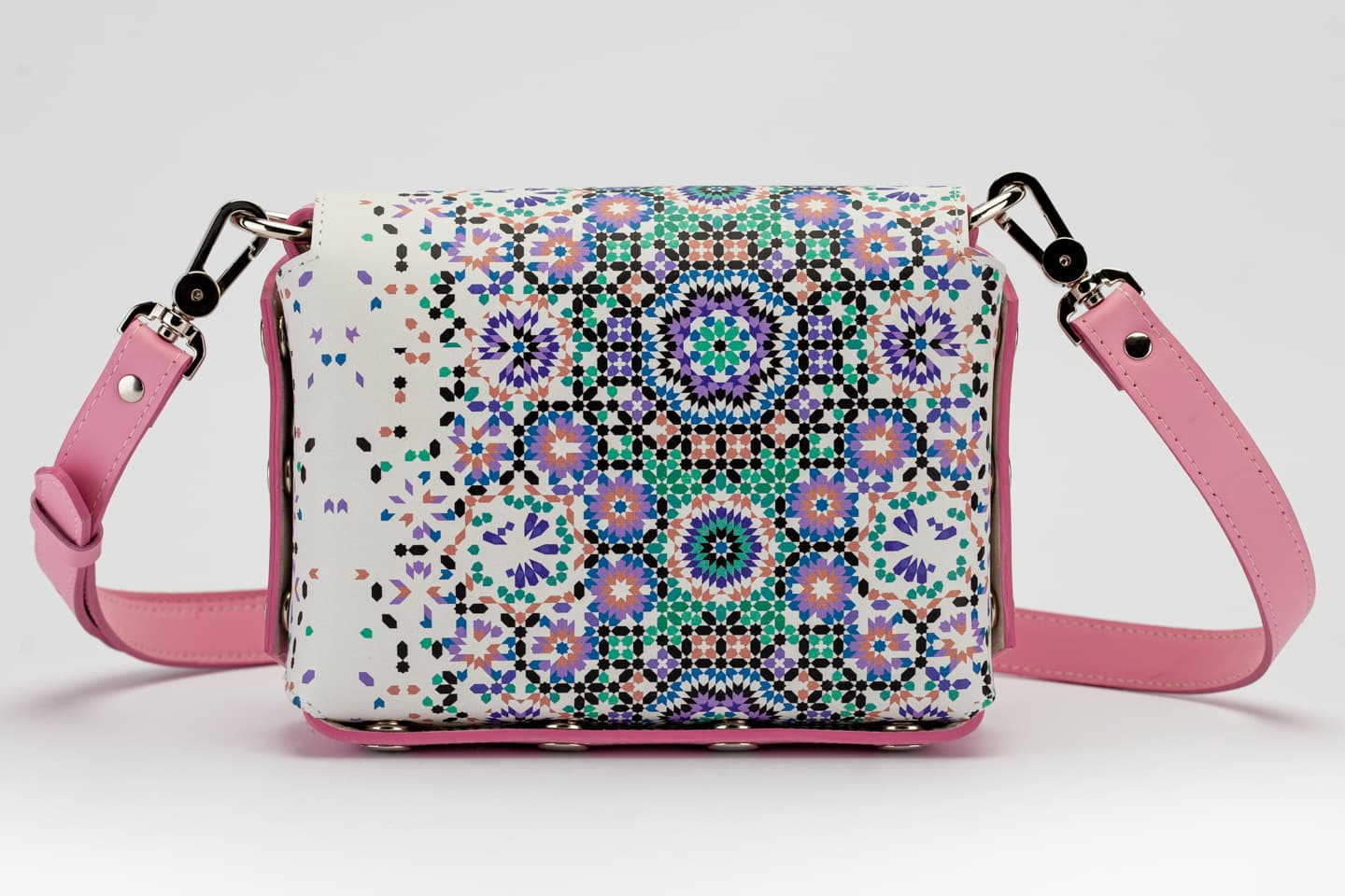 Лицевата част и дъното са изработени от висококачествена италианска кожа в розов цвят