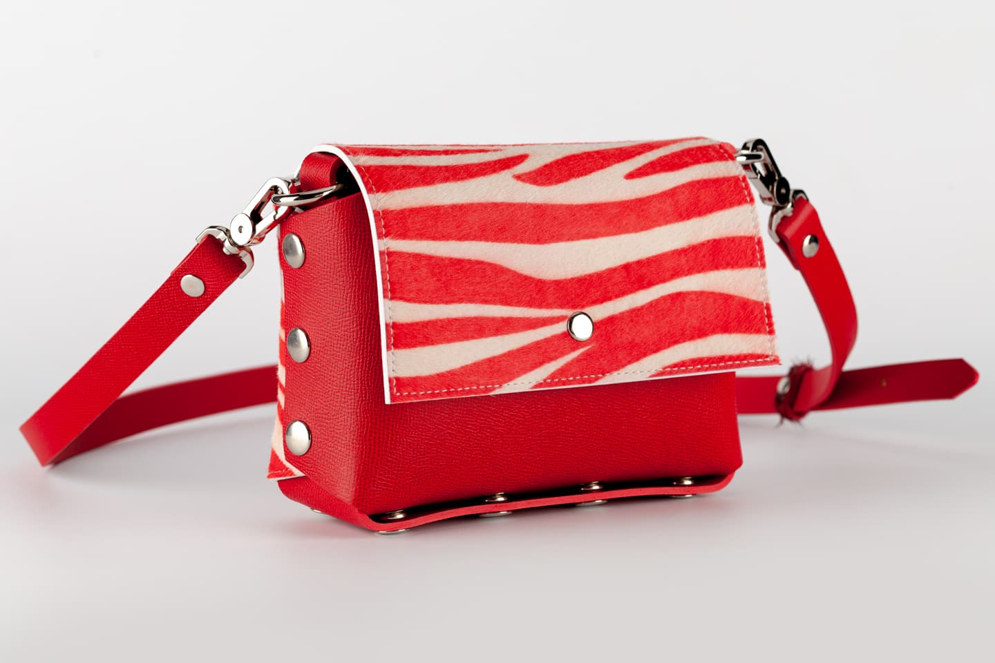 Модел Selin с капак от естествена кожа от пони с цветен принт.