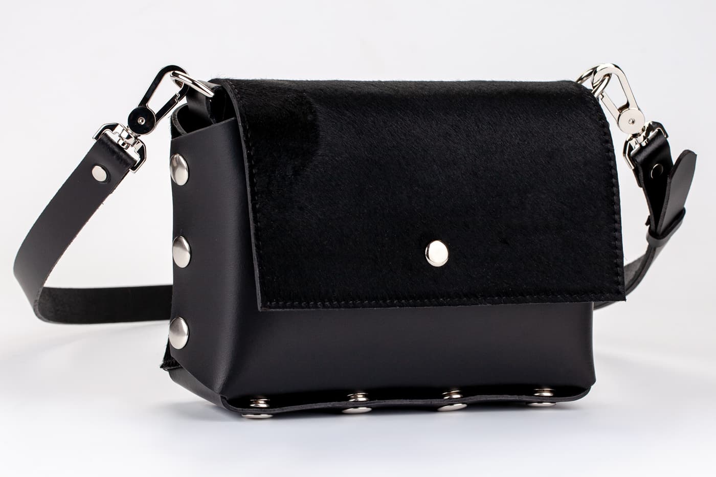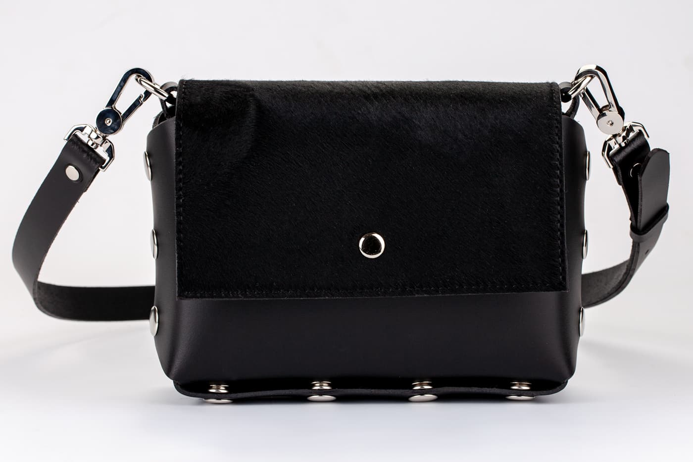 Модел Selin с капак от естествена кожа с косъм от пони в черен цвят.