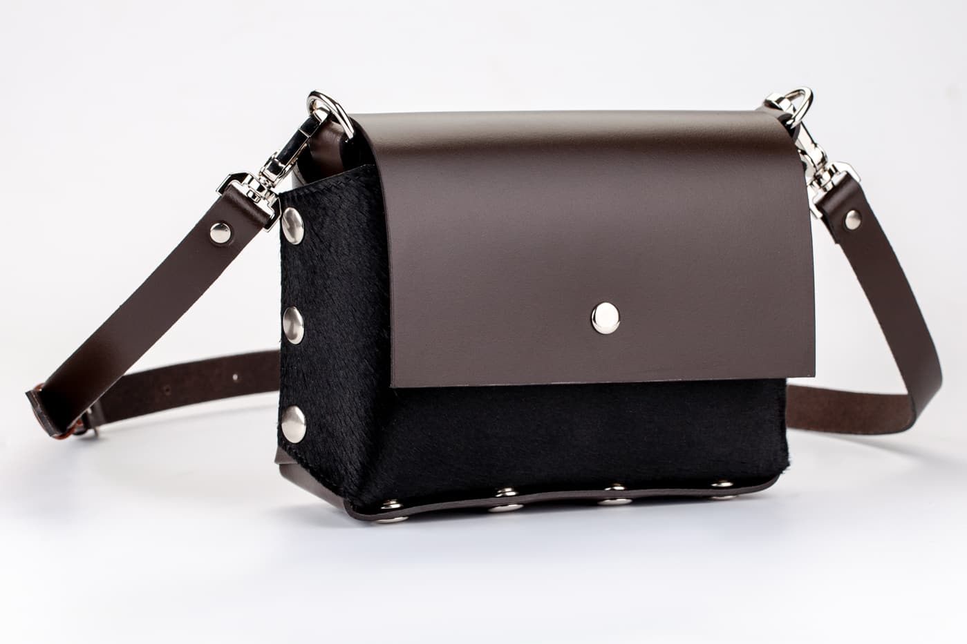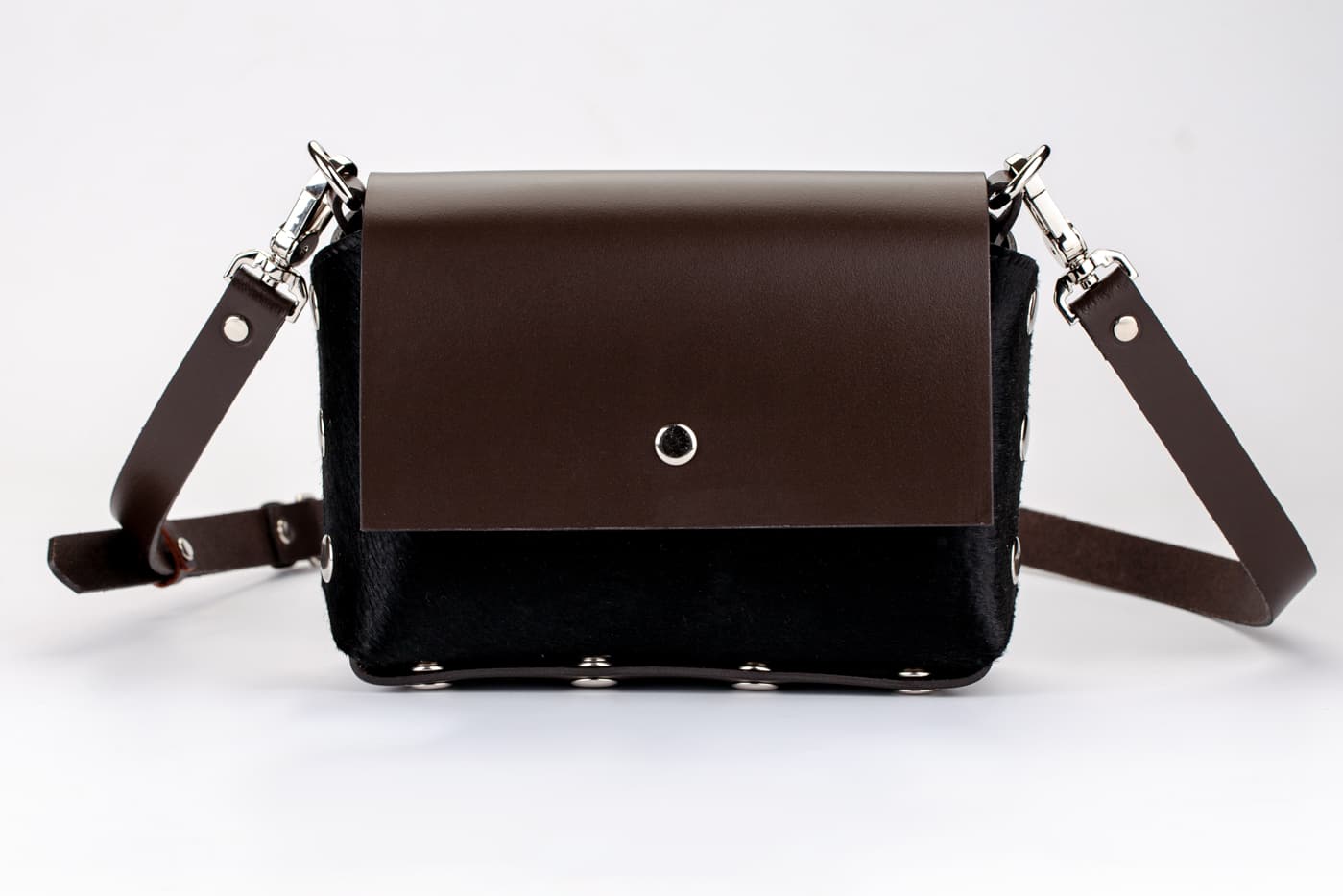 Модел Selin с лицева част от естествена кожа с косъм от пони в черен цвят.