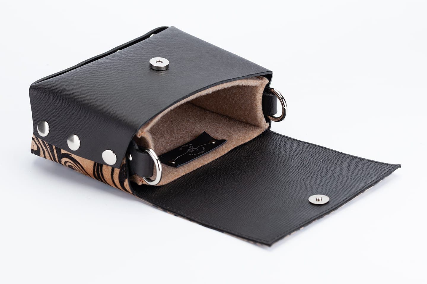 Лицевата част и дъното са изработени от висококачествена италианска кожа в черен цвят.