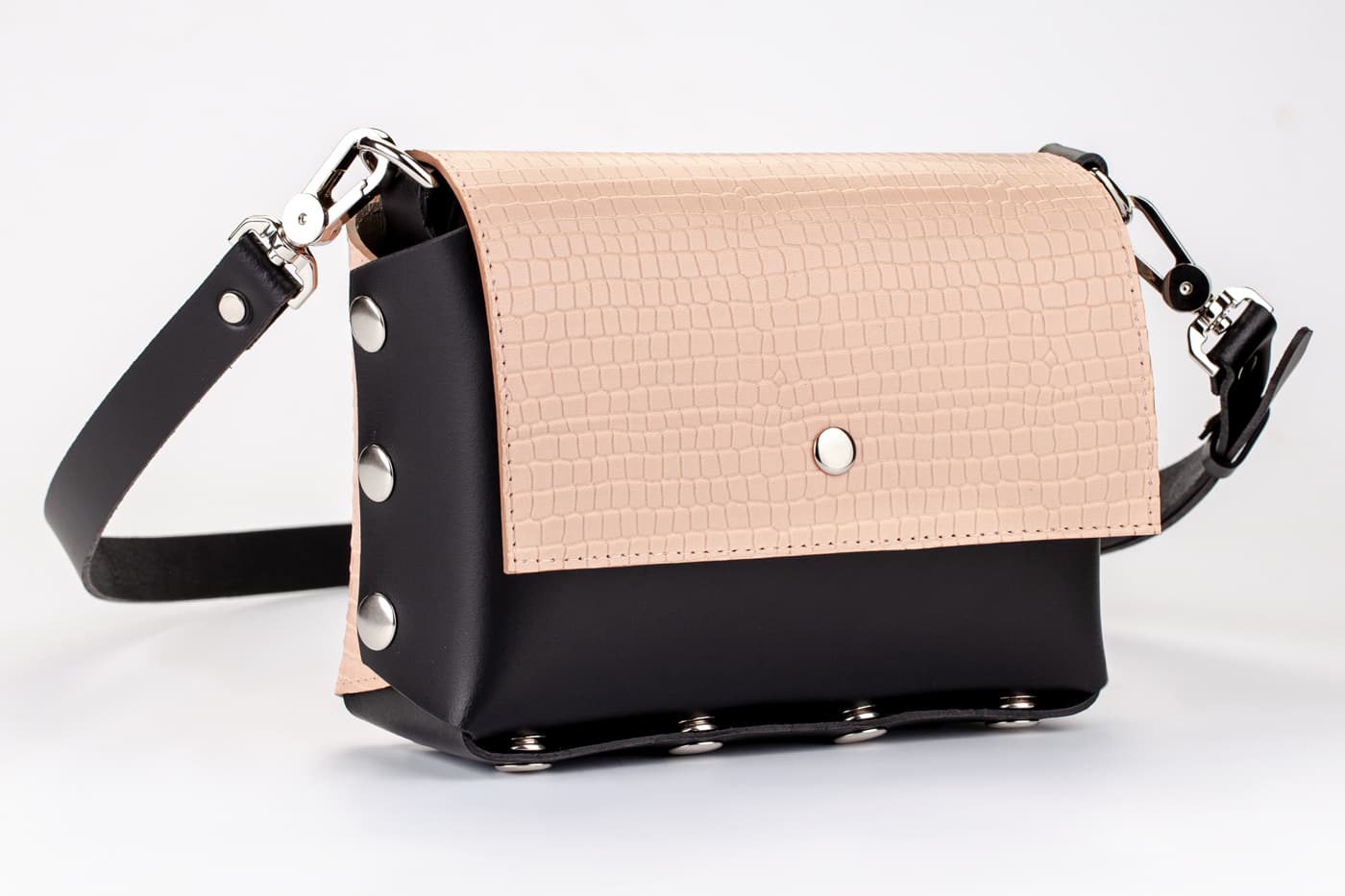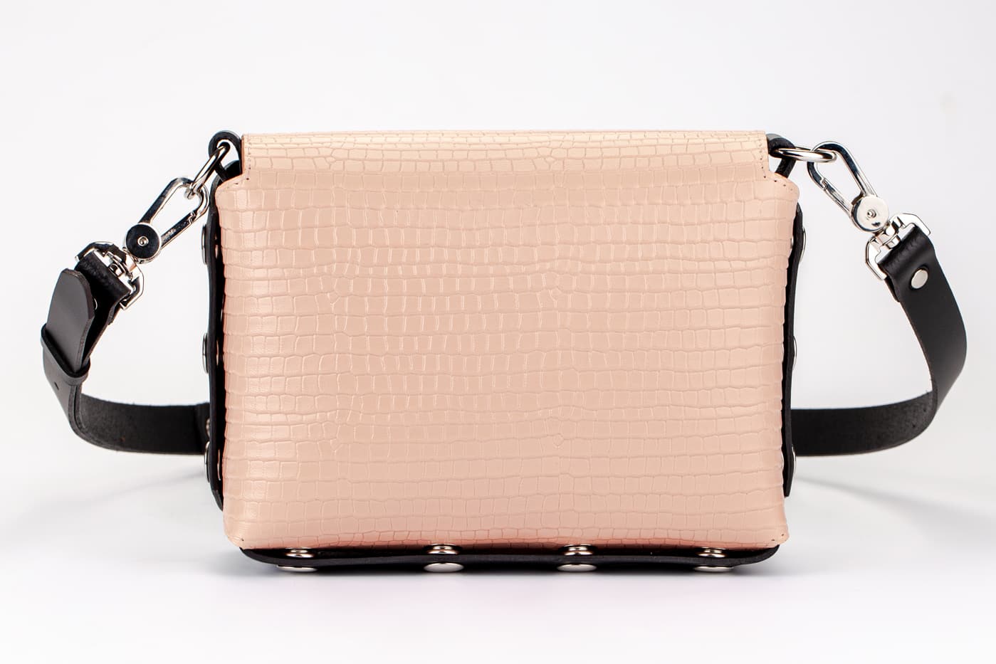Модел Selin с капак от естествена кожа в кроко принт в розово.
