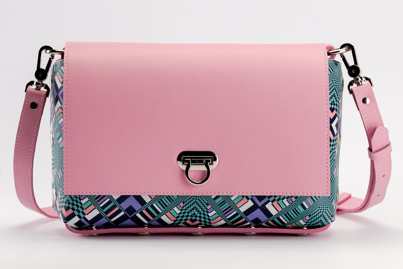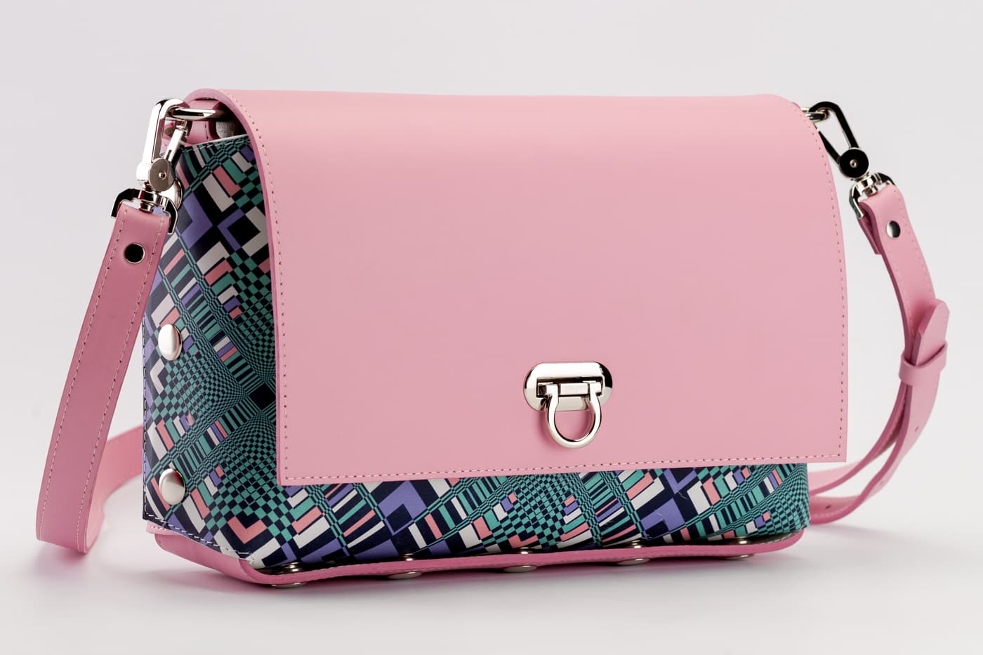 Модел Valena с лицева част от естествена кожа в цветен принт.
