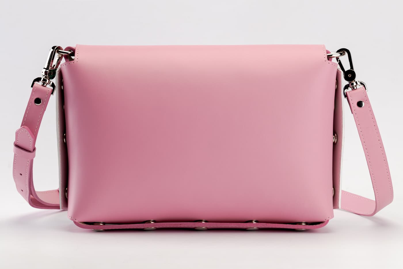 Дъното и капака са изработени от висококачествена италианска естествена кожа в розов цвят.