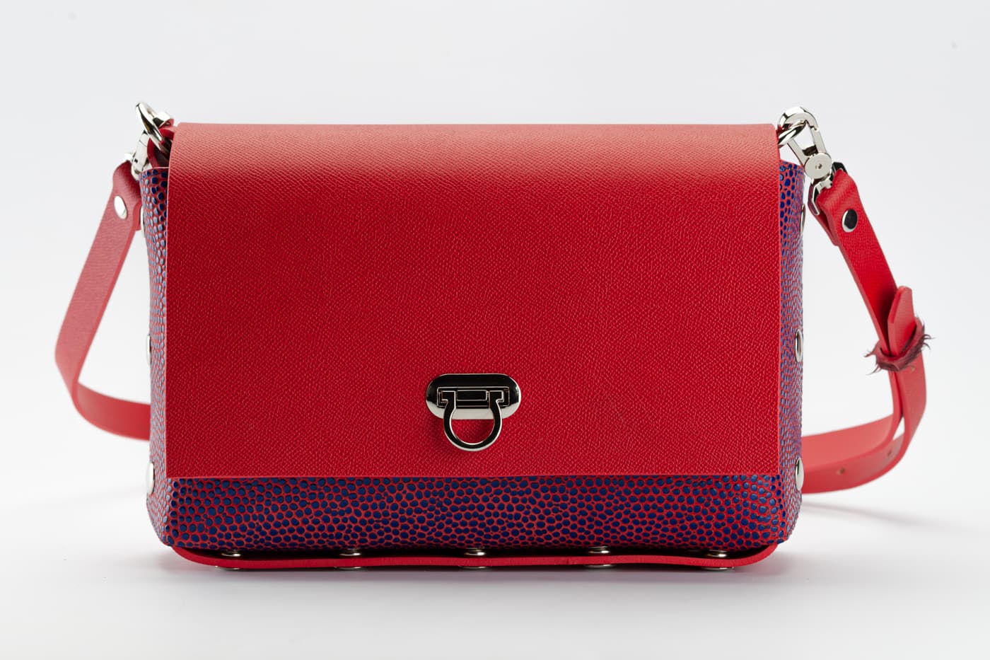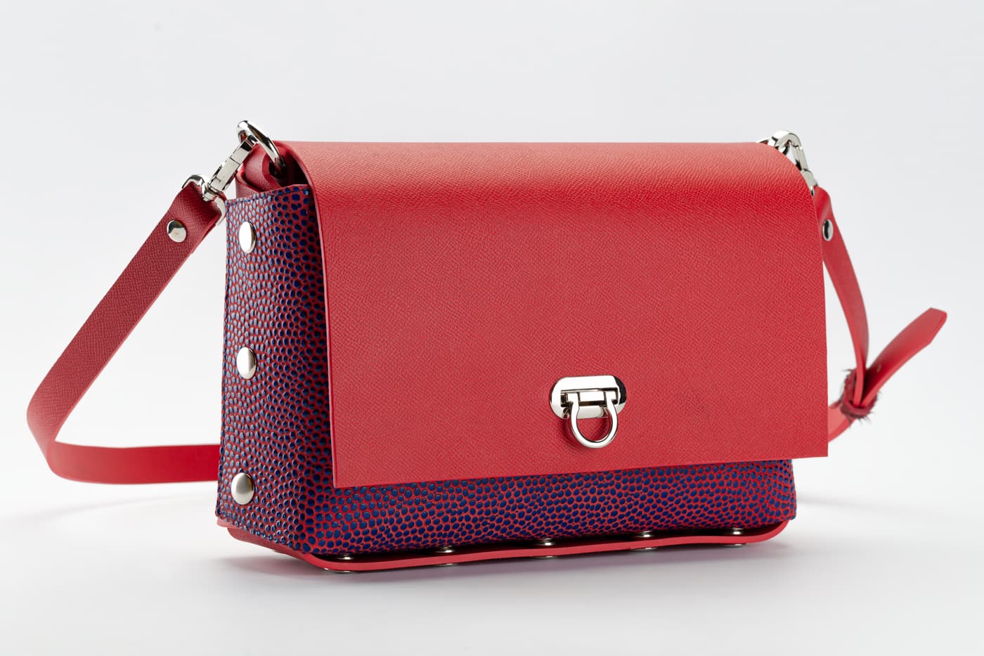 Модел Valena с лицева част от естествена кожа с цветен принт.