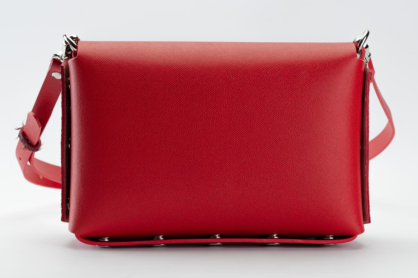 Дъното и капака са изработени от висококачествена италианска естествена кожа в червен цвят.