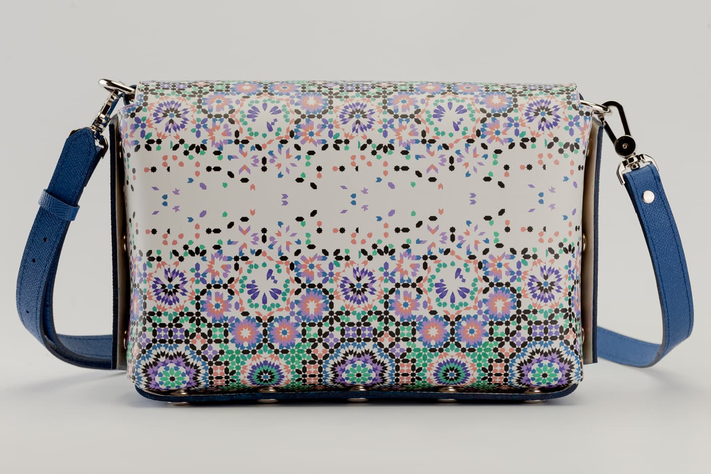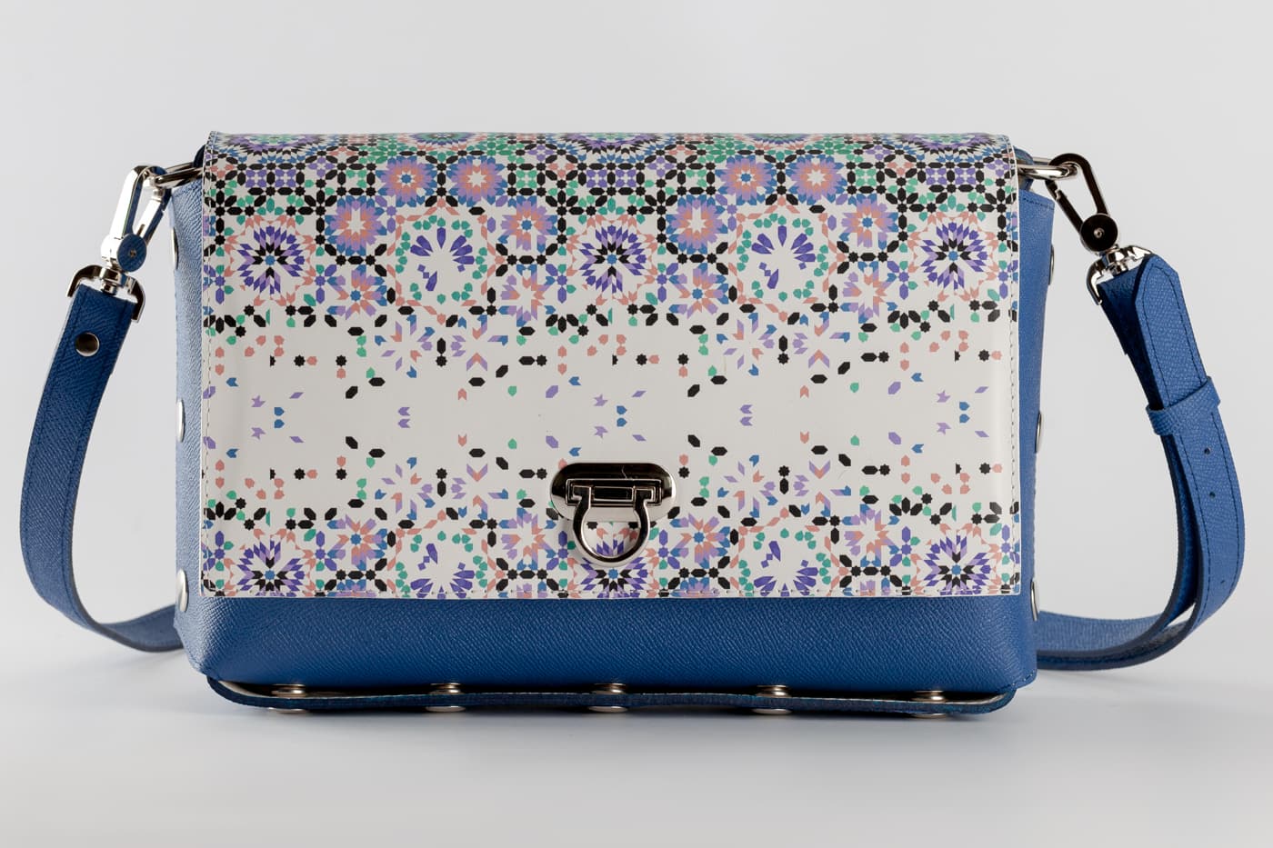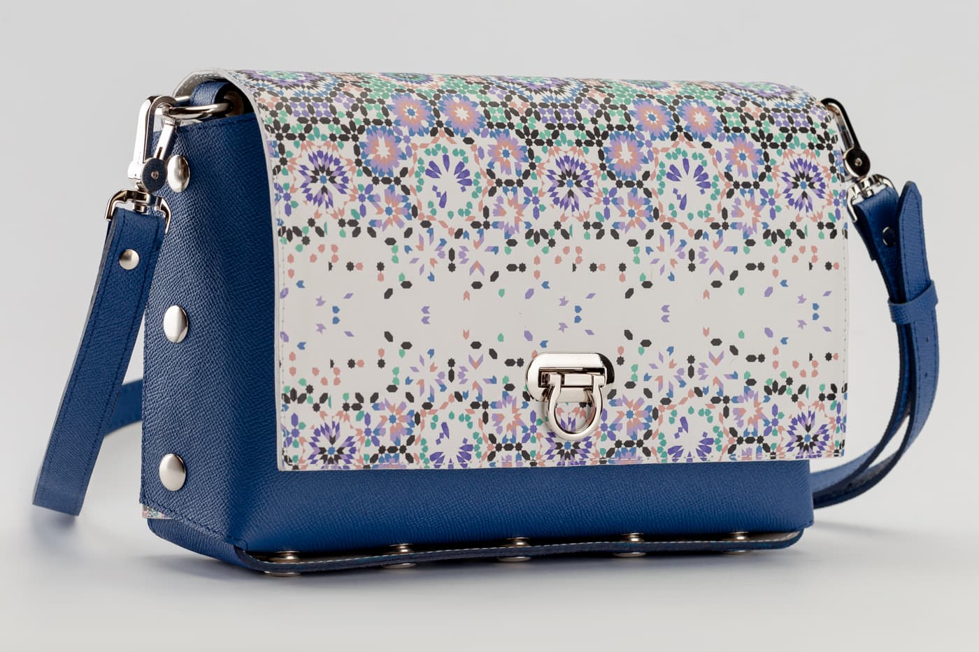 Модел Valena с капак от естествена кожа с цветен принт.