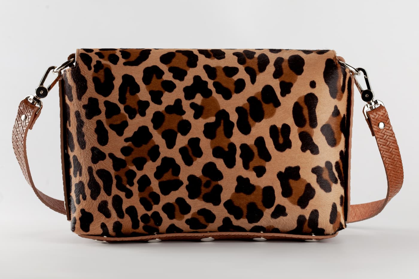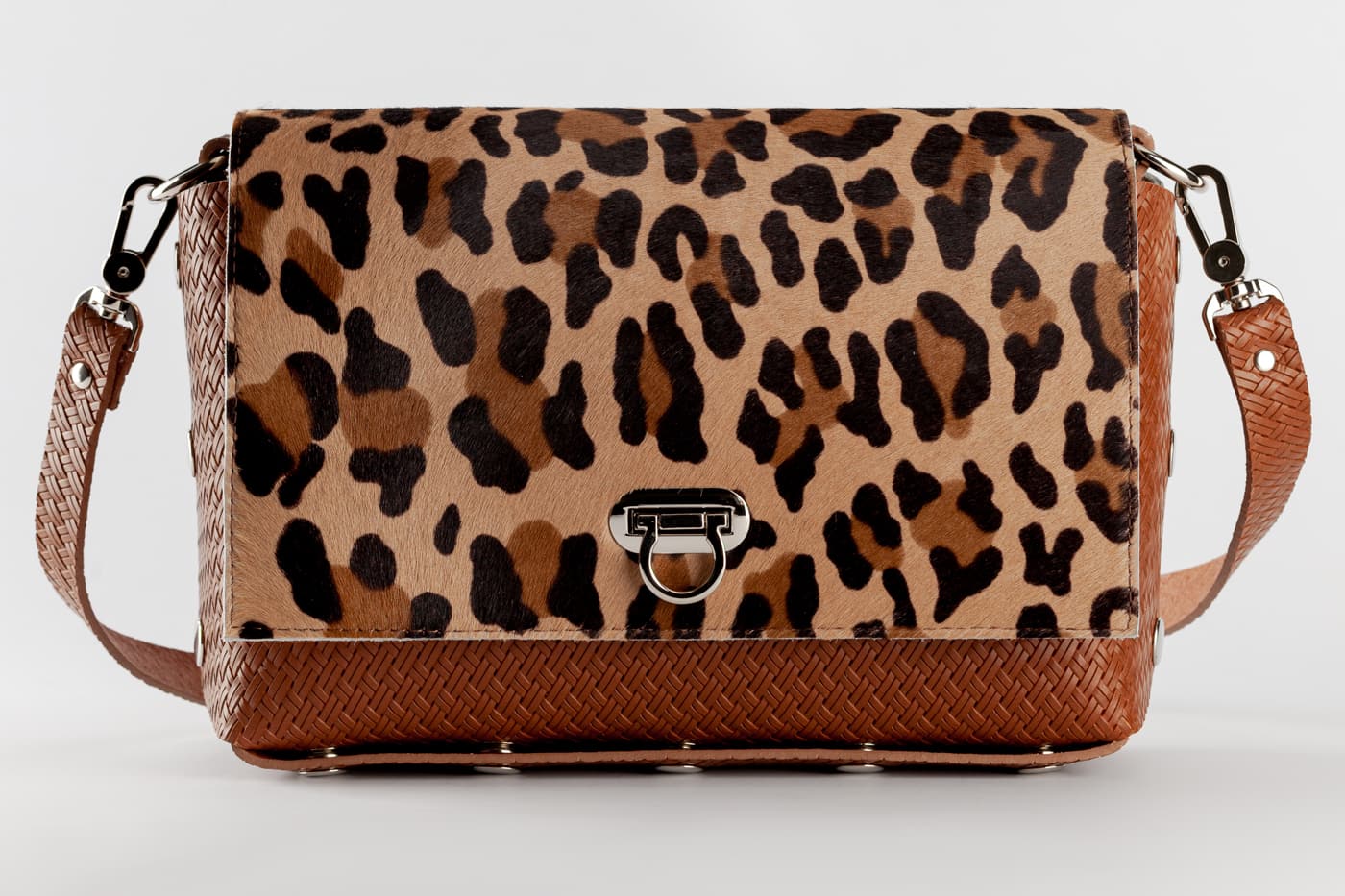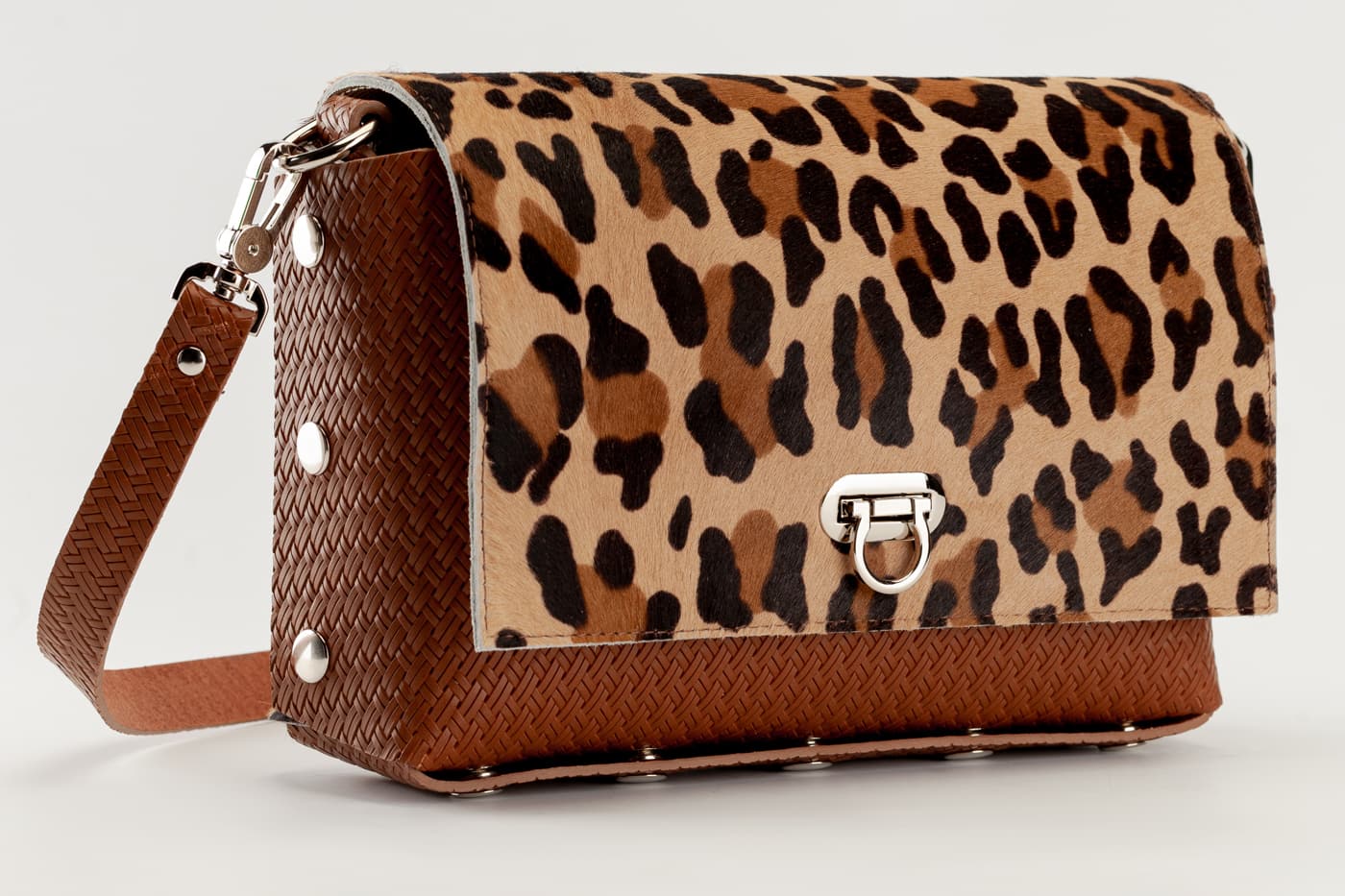 Модел Valena с капак от естествена кожа от пони с цветен принт.