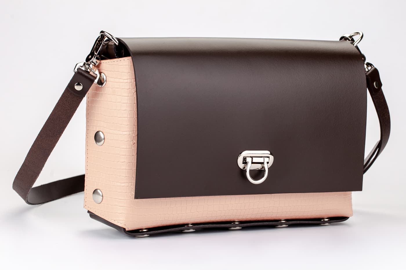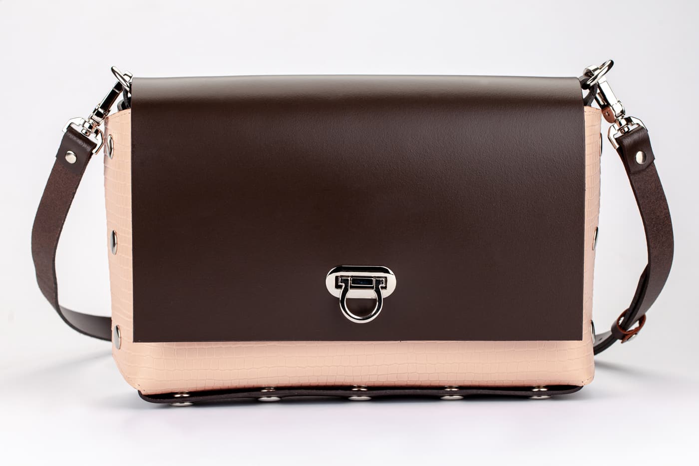Модел Valena с капак и дъно от естествена кожа в шоколадово кафяв цвят.