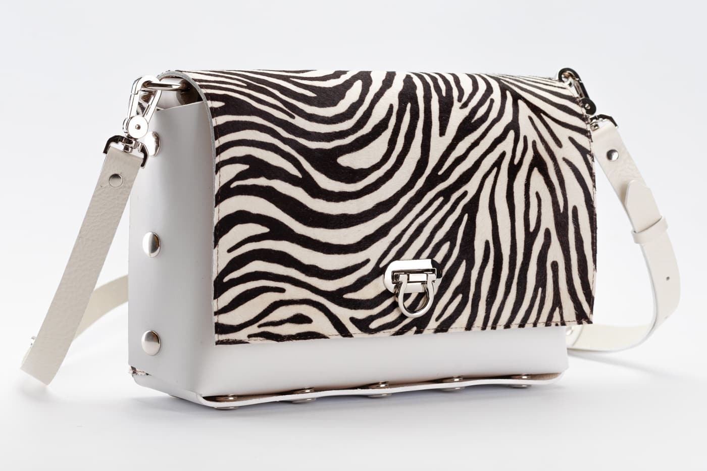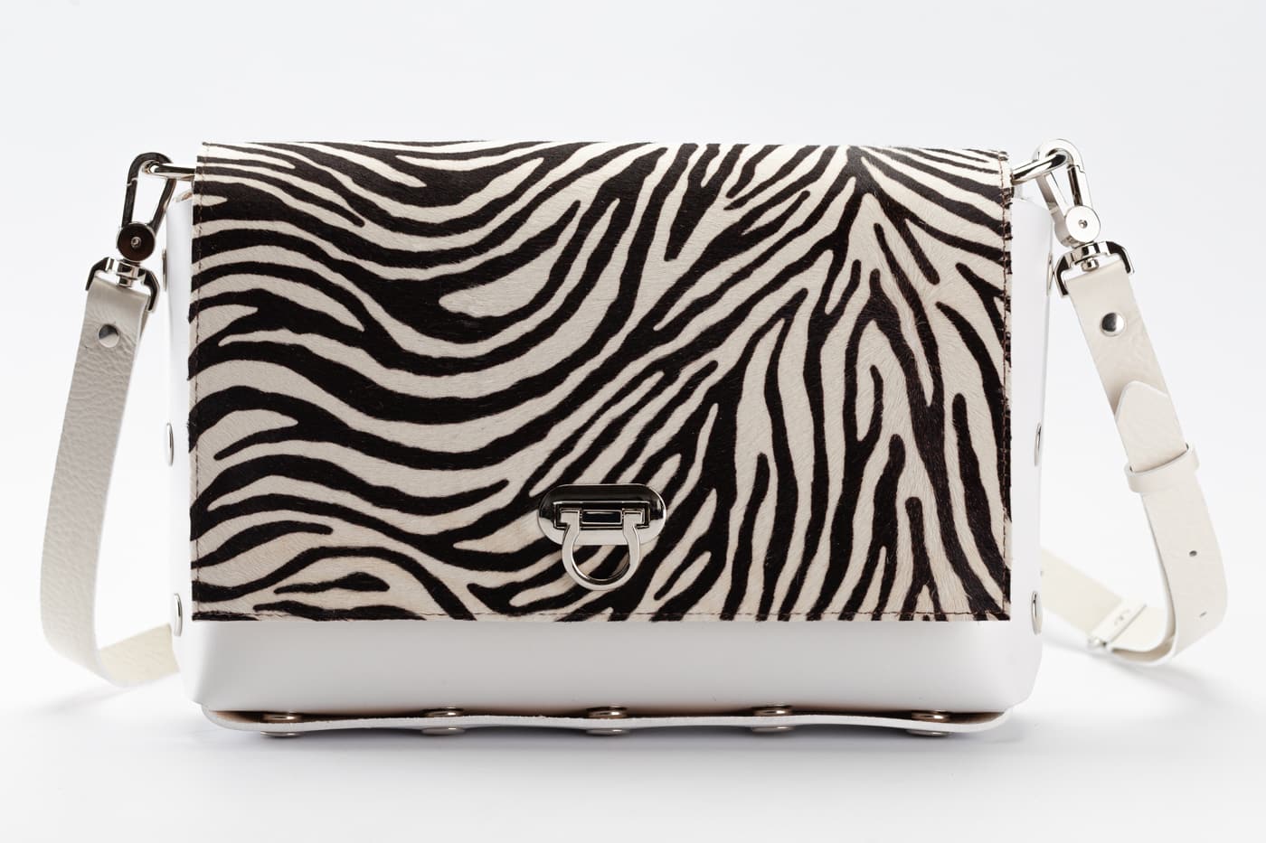 Модел Valena с капак от естествена кожа от пони с цветен принт.