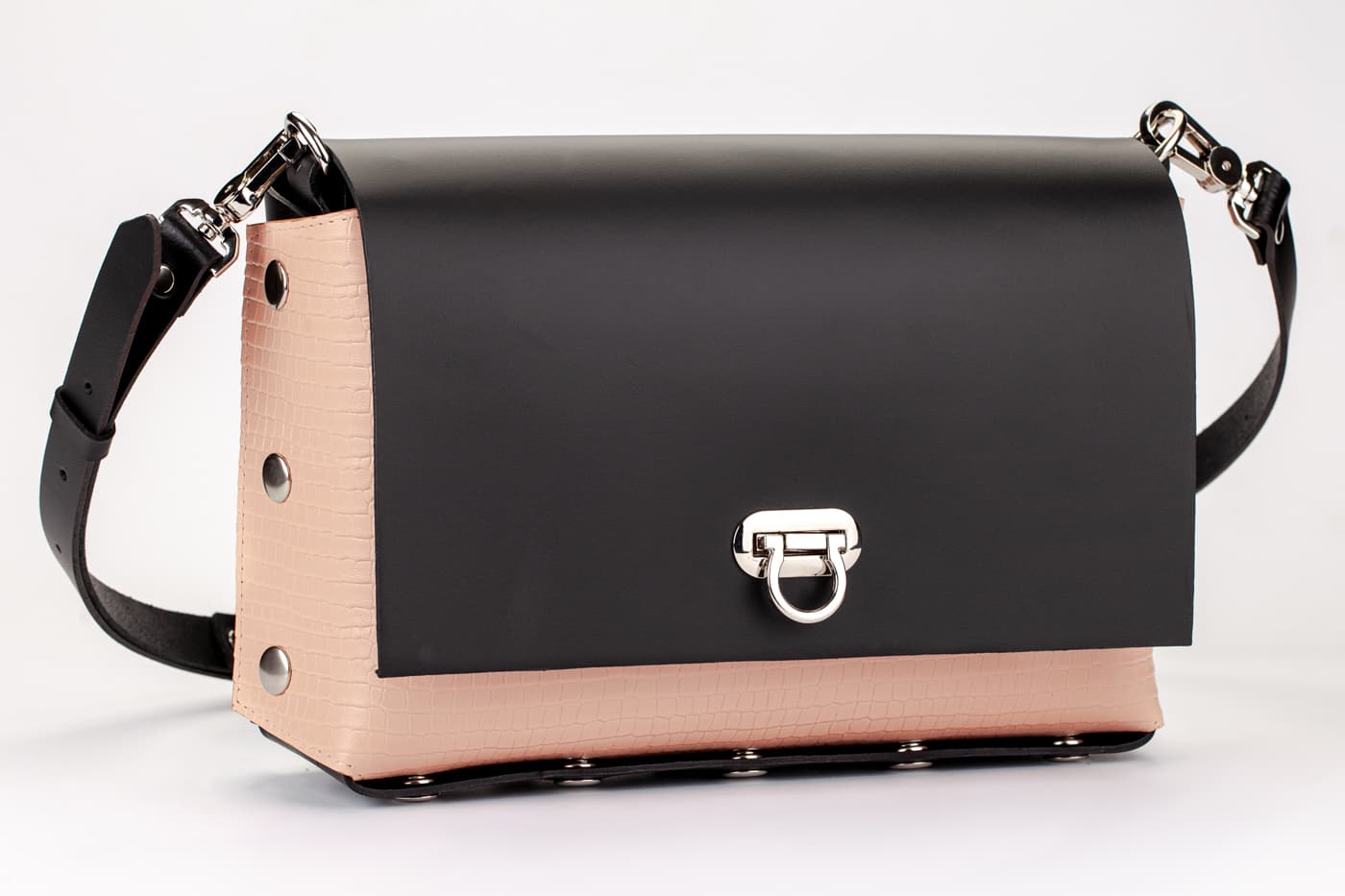 Дъното и капака са изработени от висококачествена италианска естествена кожа в черен цвят.